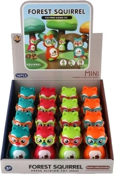 Questo simpatico scoiattolo a inerzia porta tanto divertimento ai bambini. Basta premere la testa e il giocattolo, grazie al meccanismo a inerzia, parte da solo. Si adatta perfettamente alla mano del bambino e la sua dimensione compatta di 10 cm è ideale a casa e in viaggio.