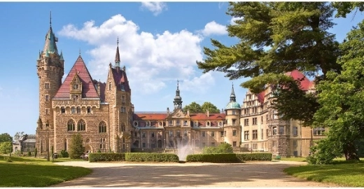 Magnifico puzzle Castello Moszna con 4000 pezzi offre una vista panoramica del gioiello polacco. Le dimensioni una volta completato sono circa 138 x 68 cm.