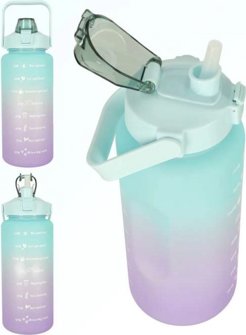 Il bidon ad alta capienza da 2 litri è progettato per l’idratazione per tutto il giorno. Sul corpo della bottiglia trovi marcatori orari che ti motivano a bere regolarmente e, grazie al beccuccio ribaltabile con cannuccia, puoi sorseggiare comodamente senza inclinare.