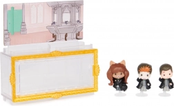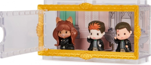 - 3 mini figure (Harry Potter, Hermione Granger, Ron Weasley) + 3 supporti, teca trasparente con sfondo double-face