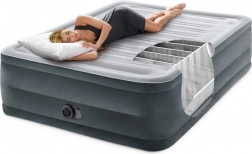 Il materasso gonfiabile INTEX extra alto offre un sonno completo per due persone a casa e in viaggio. La pompa elettrica integrata garantisce un gonfiaggio e sgonfiaggio rapidissimi, mentre la superficie floccata (vellutata) è piacevole al tatto e impedisce lo scivolamento del lenzuolo. La struttura robusta e le camere rinforzate assicurano stabilità e supporto della colonna per tutta la notte.