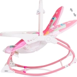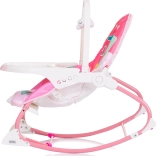 Include cinture di sicurezza a 3 punti e possibilità di bloccare il dondolo per una posizione fissa.