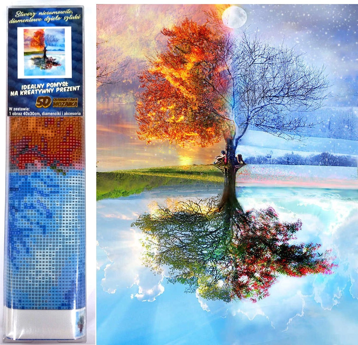 La pittura diamantata è un ottimo modo per rilassarsi e allo stesso tempo creare un bellissimo mosaico con gemme scintillanti. Il motivo dell’albero attraverso le quattro stagioni porta un’armonia di colori che risalterà in qualsiasi ambiente. Trovi tutto il necessario in un’unica confezione: apri, inizia ad applicare e guarda il quadro prendere vita.