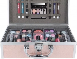 Beauty case rosa "Eye-Catcher" con specchietto integrato – in totale 42 accessori. Contiene 24× ombretti, 2× smalti per unghie, 1× smalto glitter, 1× blush, 2× rossetti, 2× lucidalabbra, 3× matite per occhi, 1× matita per sopracciglia, 3× applicatori doppia punta, 1× pennello. Dermatologicamente testato, conforme alle rigorose norme UE.
