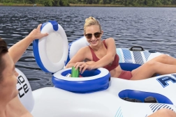 L'isola gonfiabile è ideale per il relax estivo sull'acqua. È realizzata in materiale resistente che garantisce una lunga durata e una facile gestione. Grazie agli schienali e ai due portabicchieri, puoi goderti il comfort proprio come su un divano del soggiorno! E tutto questo con la temperatura costante delle tue bevande, mantenuta dal frigorifero incorporato.