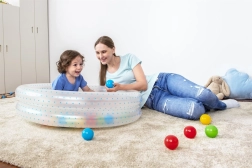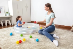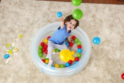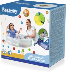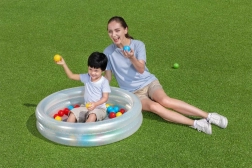 La piscina gonfiabile universale 2 in 1 del marchio BESTWAY funge da piscina per bambini e piscina a secco per palline. Dimensioni compatte 91 × 20 cm, 50 palline colorate incluse, vinile resistente e valvole di sicurezza garantiscono un gioco sicuro e divertente in casa e in giardino.