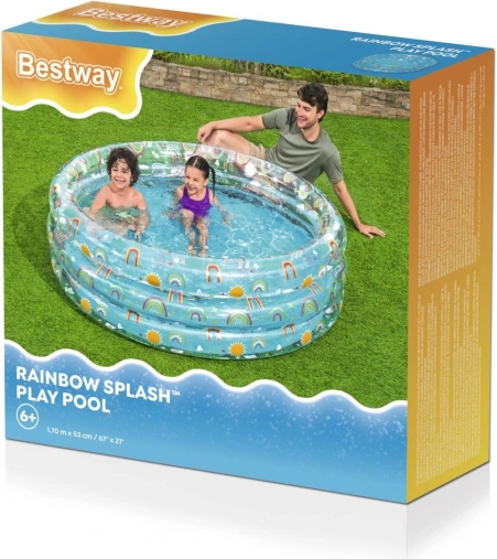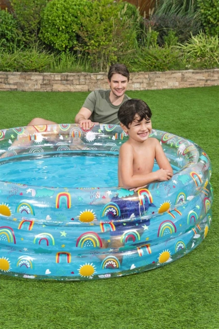 Offrite ai vostri bambini l'esperienza estiva perfetta con la piscina gonfiabile Tropical Bestway, adatta a ogni giardino. Questa piscina trasparente con motivi attraenti di arcobaleno e sole è progettata per ore infinite di divertimento e rinfresco durante le giornate calde.