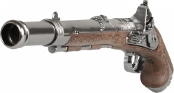 Rendi vivi i tuoi avventurosi scenari pirata con una pistola realizzata in metallo e plastica dall’aspetto autentico. Le incisioni decorative e il manico dall’effetto legno richiamano la storica pistola a pietra focaia, perfetta per costumi ed eventi a tema.
