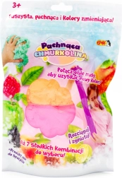 Chmurkolina porta un divertimento che stimola i sensi e l’immaginazione. Combinando i due colori nasce una nuova, originale tonalità, mentre il piacevole profumo fruttato di mora intensifica l’esperienza di gioco. La pasta è leggerissima, soffice e non si appiccica alle mani, quindi è ideale per le attività creative a casa.