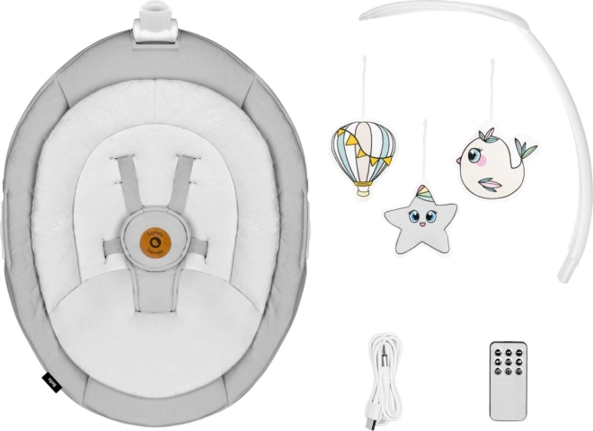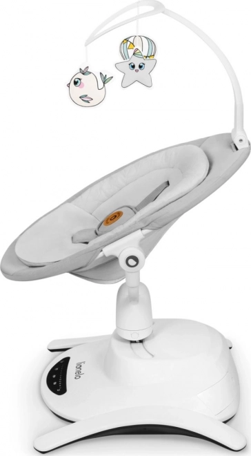 Il dondolo offre 6 modalità di movimento e un rilevatore automatico che attiva il dondolio e la musica. Può essere controllato tramite il pannello tattile o con il telecomando incluso.
