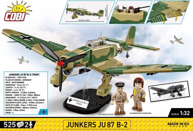 Costruisci l’iconico bombardiere della Seconda guerra mondiale – Junkers Ju 87 B-2 STUKA in scala 1:32. Questo realistico kit con 525 pezzi offre una dettagliata mimetica tropicale, cabina apribile, superfici di controllo e elica mobili, ruote girevoli con pneumatici in gomma e un supporto speciale per un’esposizione spettacolare “in volo”. Inclusi 2 minifigure (pilota e mitragliere/radiooperatore) e targhetta del modello.