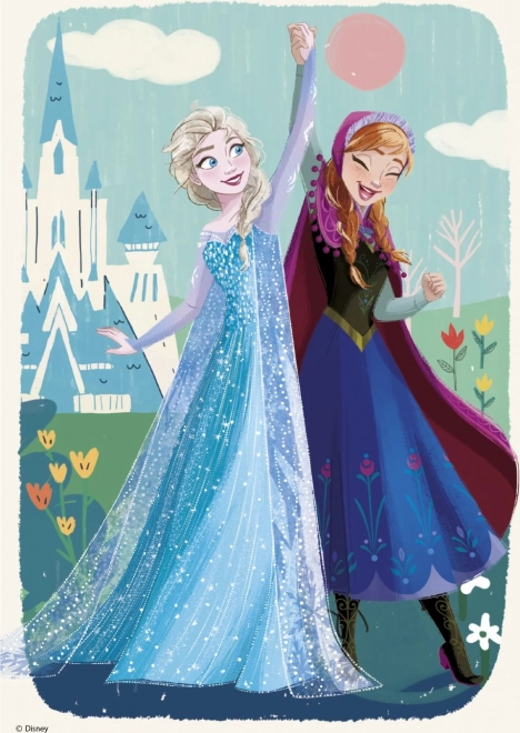 Questo set di puzzle Il regno di ghiaccio con le principesse Anna e Elsa contiene due puzzle da 77 pezzi ciascuno. È ideale per bambini dai 5 anni in su, perché aiuta a sviluppare diverse abilità e talenti.