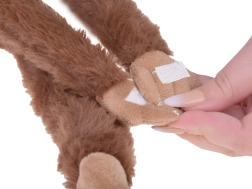 Grazie alle strisce integrate sulle zampette, la scimmietta si appende facilmente e si può sistemare in varie posizioni: al lettino, alla sedia o allo zaino.