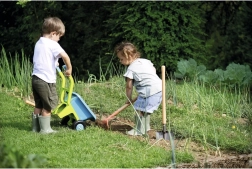Giocare con la carriola e gli strumenti supporta la motricità fine, fondamentale per lo sviluppo dei bambini.
