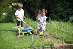 Il set include strumenti come un annaffiatoio, una paletta e un rastrello che permettono ai bambini di imitare il vero lavoro in giardino.