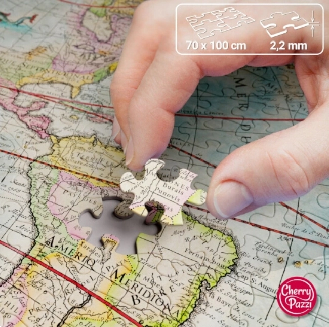 Immergiti nell’epoca delle grandi spedizioni navali e componi una mappa del mondo ricca di dettagli. Questo grande set di puzzle CHERRY PAZZI da 2000 pezzi offre una stampa precisa e dettagli raffinati che faranno felici tutti gli appassionati di storia e geografia. Una volta completato, otterrai un’immagine di circa 100 × 70 cm, ideale da esporre.