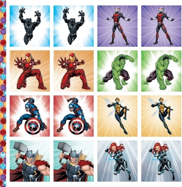Scopri il mondo dei supereroi MARVEL con il memory in un pratico quaderno. I bambini si divertiranno con un gioco avvincente che allena memoria, concentrazione e colpo d’occhio. Al termine della partita, tutte le tessere possono essere riposte nella propria scatolina di carta, che i bambini ritagliano e montano da soli.