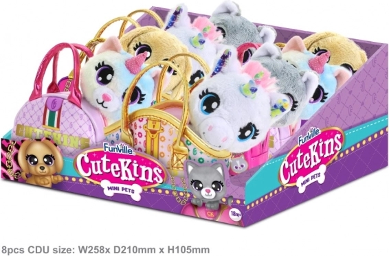 Scopri il mondo CUTEKINS – adorabili mini peluche in fantastiche borsette che i bambini adorano. Ogni set unisce un morbido amico con occhi espressivi a una borsetta trendy con dettagli dorati, così i bambini possono portarlo ovunque. Perfetto come regalo, in viaggio e per l’asilo.