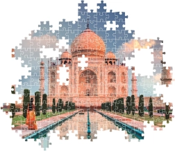 Il puzzle presenta un'illustrazione dettagliata del Taj Mahal, comprese le sue iconiche cupole e giardini, ideale per gli amanti dell'architettura.