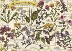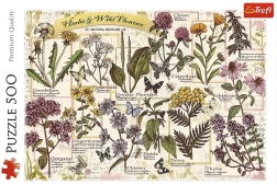 Puzzle Libro delle erbe contiene 500 pezzi e offre una meravigliosa grafica retrò con piante, che ricorda un vecchio erbario.