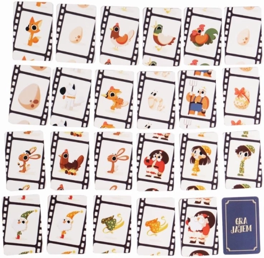 Nella versione base ci sono 3 carte: Uovo, Gallina e Volpe. Un giocatore assume il ruolo di regista e posa le carte (che sono fotogrammi del film) una sopra l’altra. Il compito degli altri giocatori è osservare attentamente il film e tagliare quando compaiono 5 Uova. Ma attenzione! Se nel film, in cui è già presente un Uovo, appare una Gallina, si siede sull’Uovo e l’Uovo smette di comparire nel film. Se appare una Volpe mentre la Gallina è seduta sull’Uovo, la Volpe rapisce la Gallina e l’Uovo ricompare nel film! Inoltre, lo scenario può essere scombussolato dal contadino Wiesiek, dal gallo Rococò, dal cane Frondzel e altri ancora.
