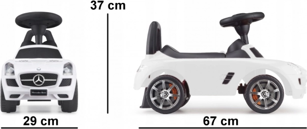 Il ride-on Mercedes-Benz SLS AMG in versione bianca è progettato con grande attenzione ai dettagli, contribuendo in modo significativo alle esperienze positive del piccolo pilota. La sua struttura resistente e leggera garantisce un divertimento duraturo. Grazie al design ergonomico privo di spigoli vivi, questo modello è non solo sicuro, ma anche altamente resistente ai danni.