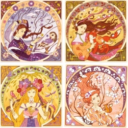 - Introduzione all'opera di Alfons Mucha - Giovani donne prendono vita in mezzo al verde.
