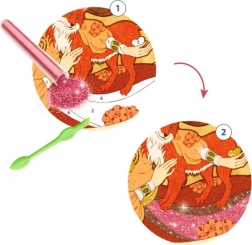 - Il set include: 4 carte illustrate (20 x 20 cm), 6 tubetti di glitter, 1 pennello, 1 strumento di plastica e un opuscolo a colori con istruzioni passo-passo.