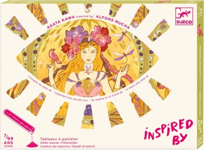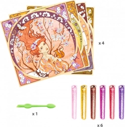 Sabbiatura scintillante DJECO offre bellissime illustrazioni ispirate da Alfons Mucha. Questa attività permette ai bambini di conoscere l'opera di questo grande maestro dell'Art Nouveau e allo stesso tempo di creare meravigliose immagini scintillanti.
