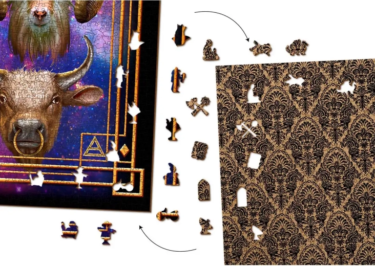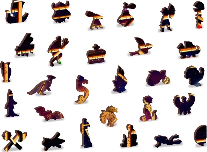 I puzzle in legno WOODEN CITY tagliati al laser, con i loro pezzi dalla forma speciale, sono incredibilmente divertenti. Una parte dei pezzi è realizzata a forma di animali, edifici o oggetti, con dettagli messi in risalto dal laser che ne amplificano l’effetto finale. Questi pezzi possono stare in piedi da soli come piccole figurine. L’assemblaggio di puzzle con pezzi di forme diverse è più impegnativo e rappresenta una sfida maggiore rispetto ai puzzle classici. Inoltre, il puzzle è bifacciale: si può comporre sia seguendo l’immagine (lato frontale) sia basandosi sulle forme (lato posteriore con motivo).
