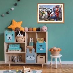 Una scena dinamica con Spider‑Man, Miles Morales e Doctor Octopus che entusiasmerà i piccoli fan dei fumetti e li invoglierà a comporre.
