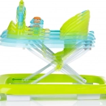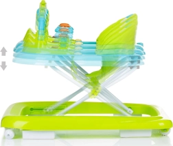 Il girello si piega e si monta con facilità, così puoi riporlo senza difficoltà anche in spazi ridotti. Le 3 posizioni di altezza del sedile consentono di adattarlo all’altezza attuale del bambino, mentre le ruote anteriori girevoli a 360° facilitano il movimento nella stanza.