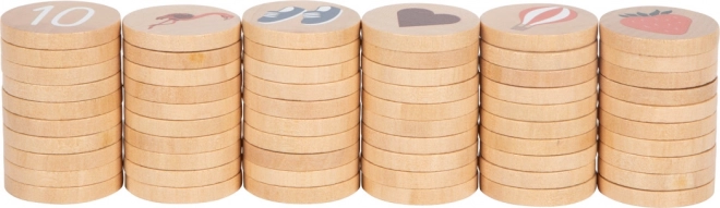 - 60 solidi gettoni in legno con illustrazioni colorate