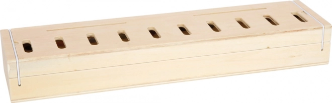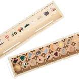 Il contenitore in legno con dieci scomparti mantiene tutto in ordine. Le chiusure elastiche assicurano una chiusura sicura – ideale per i viaggi.