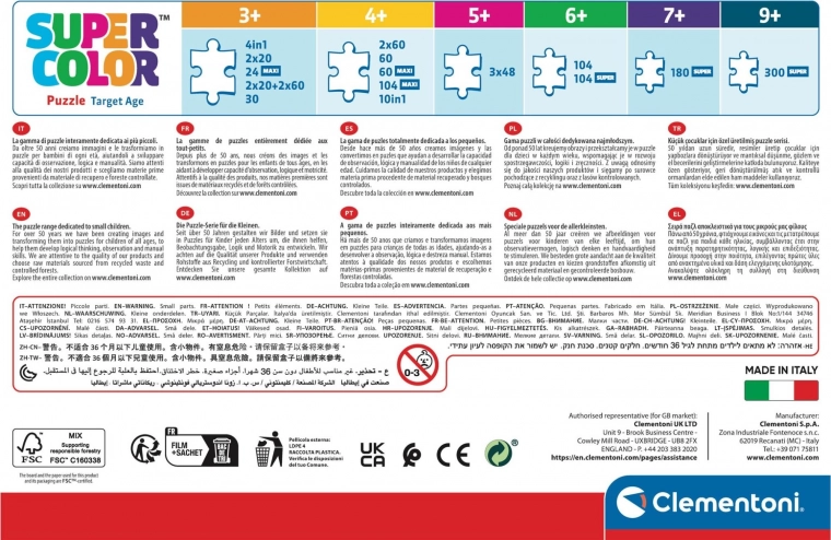 Due puzzle per bambini con lo stesso numero di pezzi e le stesse dimensioni. Puzzle SuperColor Collection - una linea progettata appositamente per i bambini, li aiuta a sviluppare la manualità e la capacità di osservazione. La qualità dei materiali e la tecnica di stampa esclusiva garantiscono colori sempre belli, vivaci e brillanti.