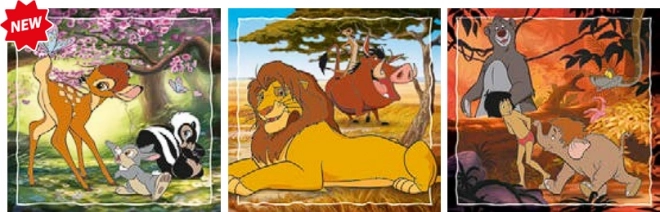 Il set include 3 puzzle separati, ciascuno da 48 pezzi, con classici soggetti DISNEY: divertimento e varietà per ogni pomeriggio.
