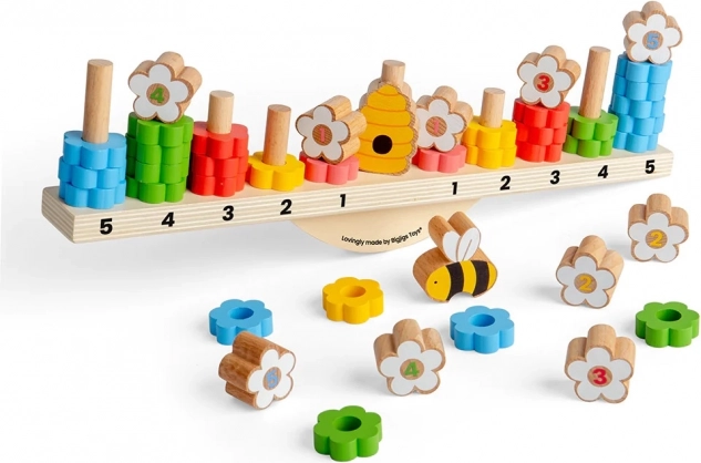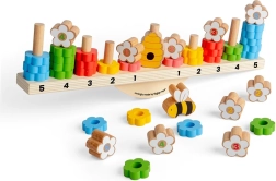 Gioco di equilibrio Ape offre divertimento per bambini e adulti. L'obiettivo del gioco è bilanciare i fiori colorati sulla tavola affinché rimanga stabile. Chi riesce per primo a impilare tre fiori bianchi vince. L'ape può essere usata per bilanciare o bloccare l'avversario.