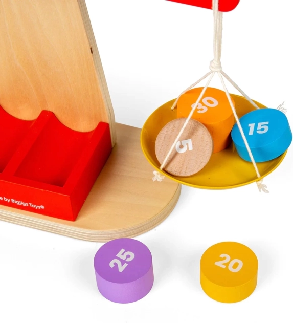 Dotata di una struttura in legno, due piatti di bilanciamento e un set di sette pesi numerati, la bilancia permette ai bambini di sperimentare diverse combinazioni e apprendere l'equilibrio. L'obiettivo è raggiungere uno stato di equilibrio aggiungendo o rimuovendo pesi. Ideale per l'apprendimento STEM, incoraggia creatività e pensiero innovativo. Sviluppa anche la motricità fine, la percezione spaziale e le capacità di risoluzione dei problemi.