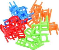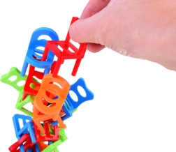 Il gioco di equilibrio con sedie che cadono mette alla prova pazienza, concentrazione e abilità. L’obiettivo è aggiungere gradualmente sedie alla struttura crescente senza toccare i pezzi già posizionati e senza far crollare la torre. Vince chi per primo posiziona tutte le proprie sedie.