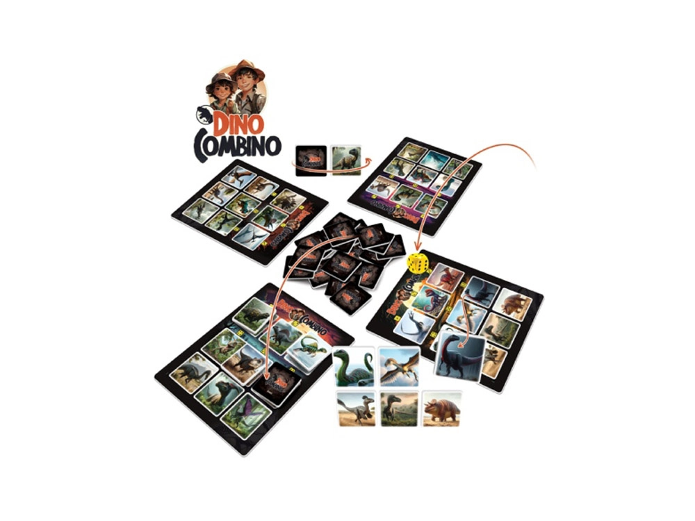 DINO Combino è una scelta perfetta per tutti gli amanti dei dinosauri. L’obiettivo è essere i primi a completare la propria plancia con i dinosauri corretti. I giocatori si alternano tirando il dado, scoprendo tessere e assegnandole con astuzia. Il successo dipende da buona memoria, prontezza e combinazioni intelligenti.