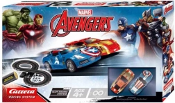 Il set da corsa Carrera GO con gli eroi degli Avengers offre un divertimento dinamico per tutta la famiglia. La pista lunga 2,4 m con le auto di Captain America e Iron Man propone rettilinei, curve e un ponte. L’alimentazione è possibile con batterie o trasformatore (non inclusi), il sistema è compatibile con GO!!! e grazie alle clip si assembla facilmente.