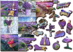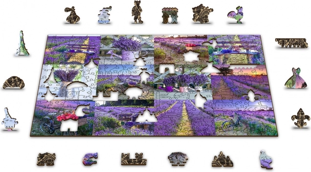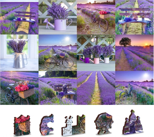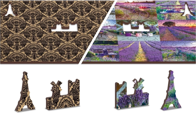 Il puzzle è bifacciale e consente di comporlo seguendo il motivo della lavanda o il pattern sul retro.