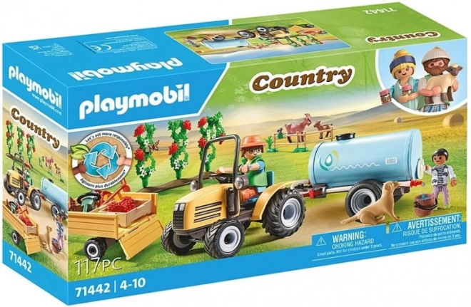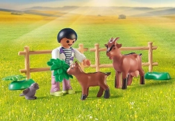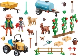 Il set include: due figurine Playmobil, un cane, due capre, un trattore con rimorchio, una cisterna d'acqua e molti altri accessori che aumentano la realisticità delle storie.