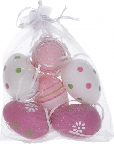 Ogni uovo ha una lunghezza di 6 cm ed è fornito in un elegante sacchetto di organza. Questo design dettagliato e creativo rende le uova accattivanti e può diventare il punto focale delle tue decorazioni pasquali.