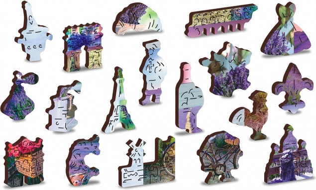 Vivi una splendida avventura con il puzzle in legno WOODEN CITY con motivo Francia della Lavanda. Grazie ai pezzi tagliati al laser dalle forme uniche che raffigurano animali, edifici o oggetti, la composizione acquista una nuova dimensione. Sul lato posteriore del puzzle troverai un motivo ripetuto che facilita la composizione seguendo le forme.