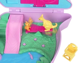 Il mondo di gioco tascabile di Polly Pocket in una graziosa borsetta a forma di canguro offre una casetta pieghevole piena di mini stanzette, elementi divertenti e amici animali. Grazie al cinturino a spalla il set è facile da trasportare ed è ideale per i viaggi. All’interno troverai uno scivolo, un’altalena, una piscina, un uovo con pinguino segreto e accessori per la cura degli animali – il divertimento e la fantasia non mancheranno.