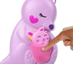 Scopri il magico mini mondo nascosto nella borsetta a forma di canguro. Una volta aperta, i bambini troveranno vari livelli con stanzette – camera da letto per i cuccioli, angolo pranzo con seggiolina e bagno con vasca. Non mancano la postazione sull’albero per la koala, la zona d’acqua con laghetto e gli elementi interattivi per storie senza fine.