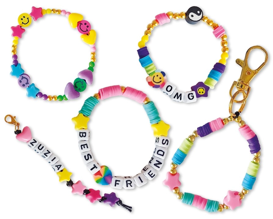 Il set di perline con dolci messaggi è un divertimento fantastico che insegna pazienza e creatività. I braccialetti creati saranno il complemento perfetto per il tuo stile o un regalo per una persona cara. Il set include: perline con lettere, perline di plastica dorate, perline di plastica, cordino cerato nero, elastico nero, filo elastico, accessori in metallo