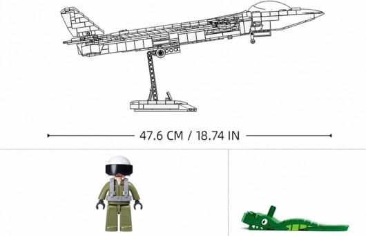 Grazie a oltre mille pezzi, potrai goderti una costruzione curata: cockpit removibile per il pilota, ruote pieghevoli con carrello apribile e missili integrati esaltano l’autenticità. I canard anteriori e le ali superiori posteriori orientabili donano al modello una dinamica che sembra pronta al decollo.
