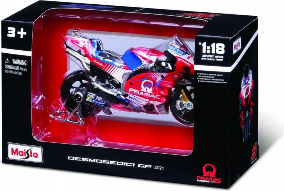Questo modello dettagliato della moto da corsa DUCATI PRAMAC si ispira alla DESMOSEDICI GP. In scala 1:18 spicca per l’aerodinamica fedele, le ruote realistiche e la verniciatura di qualità nella iconica combinazione di rosso, blu e bianco. Ideale per collezionisti, fan della MotoGP e come decorazione di stile.